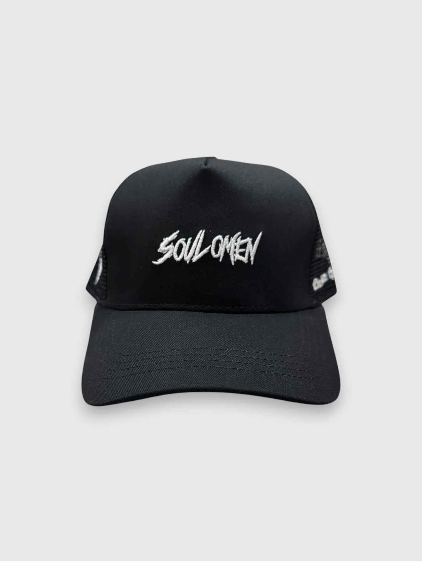 “SOUL OMEN” MESH TRUCKER HAT - BLACK