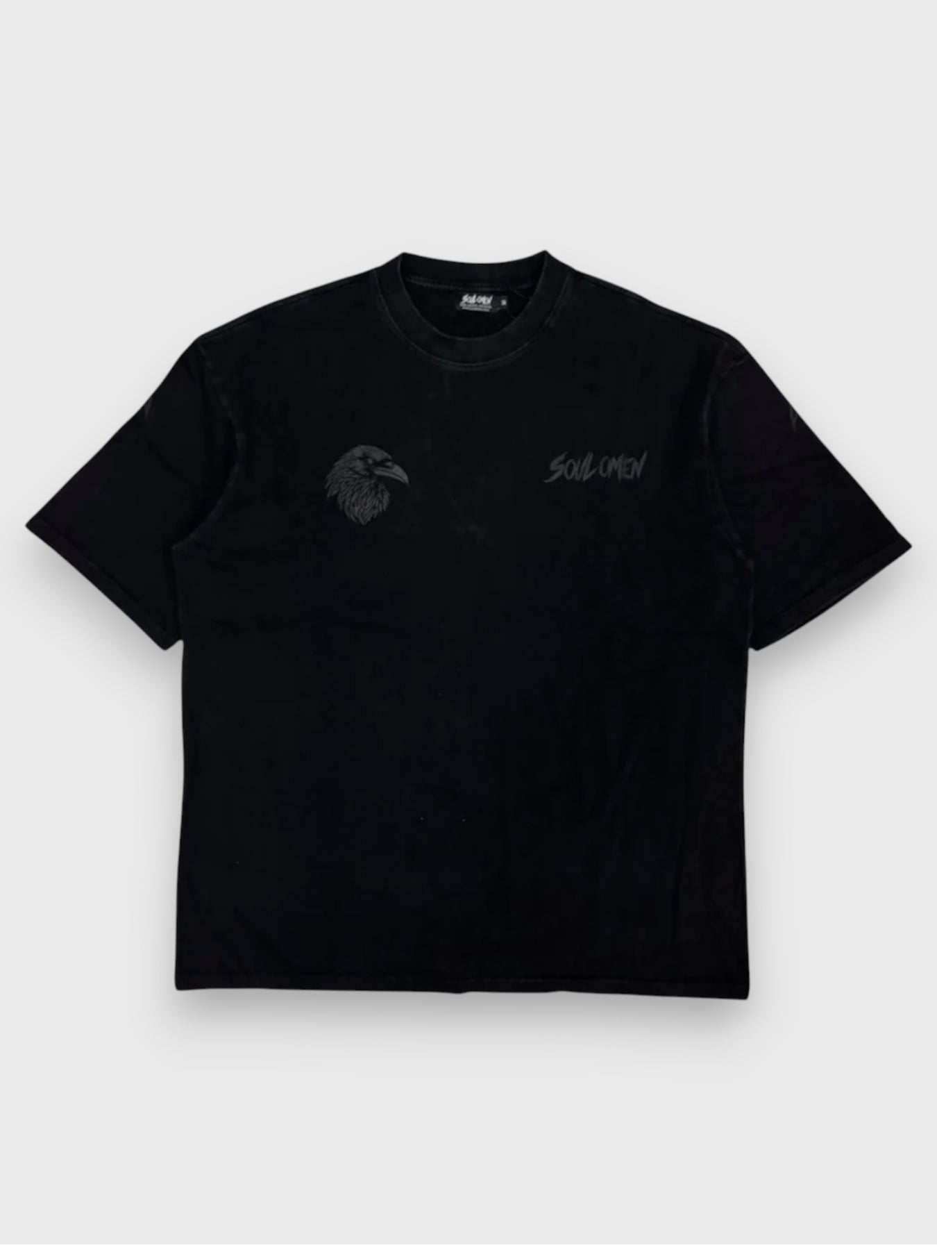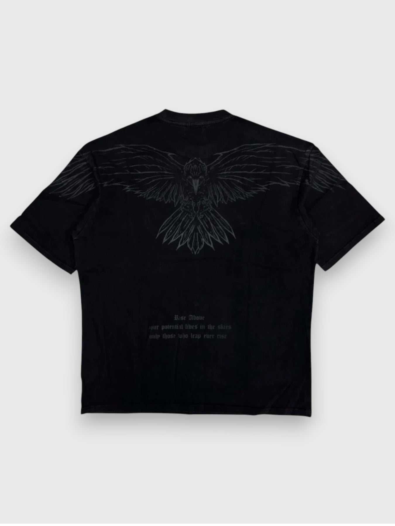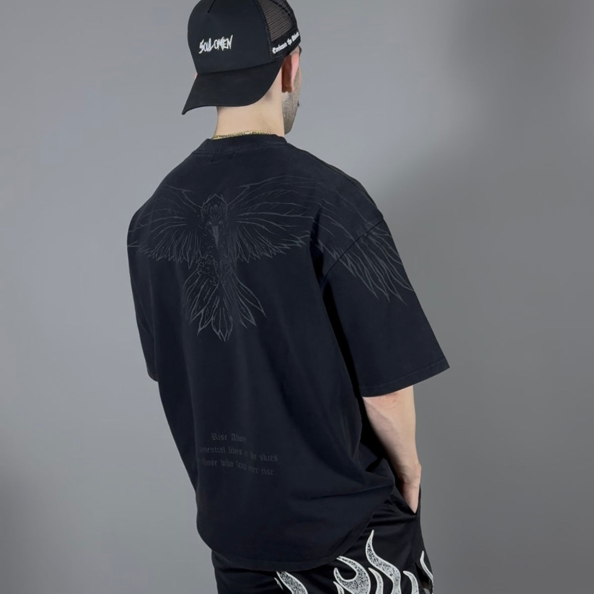 “FLY HIGH” V2 PREMIUM OVERSIZED TEE - ACID WASHED BLACK / BLACK