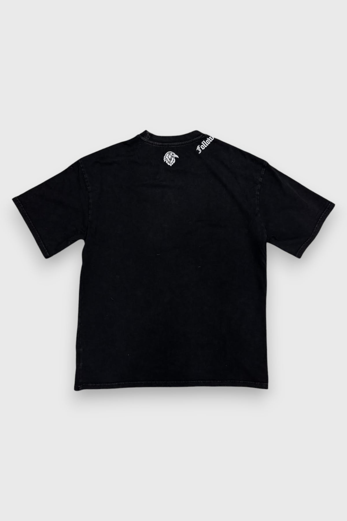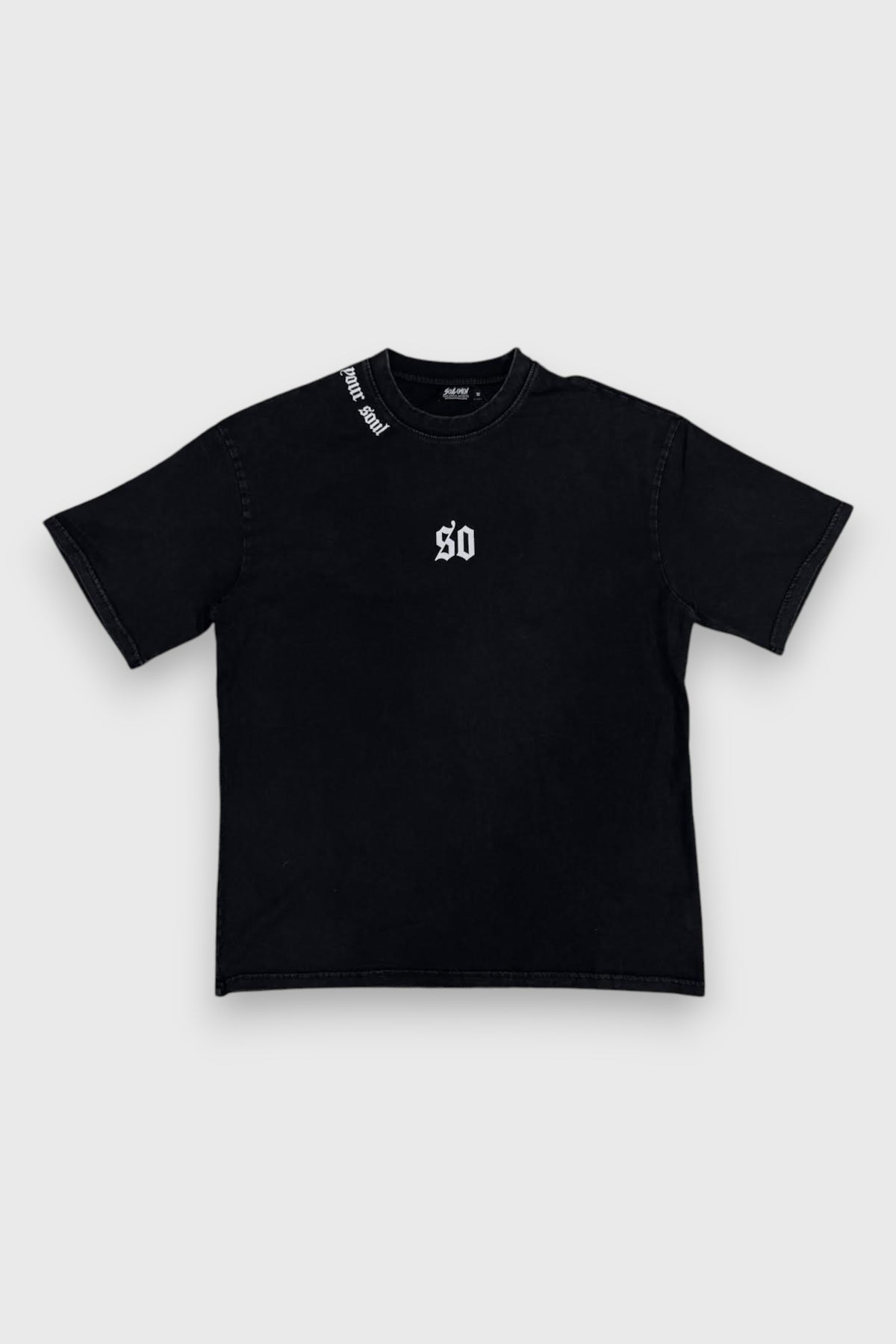 "FOLLOW YOUR SOUL" PREMIUM OVERSIZED TEE - STONE WASHED BLACK