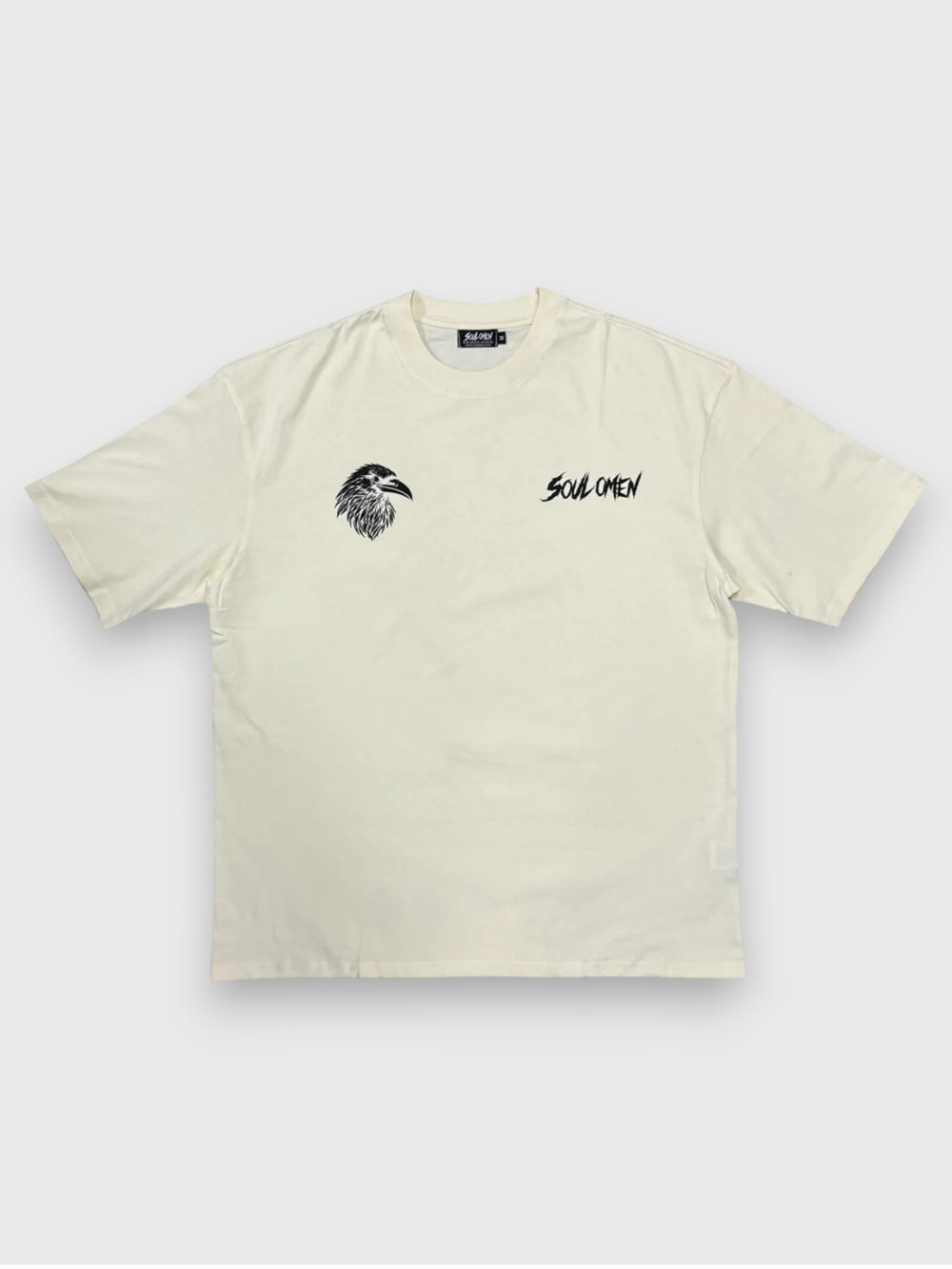 “FLY HIGH” PREMIUM OVERSIZED TEE - CREAM / BLACK