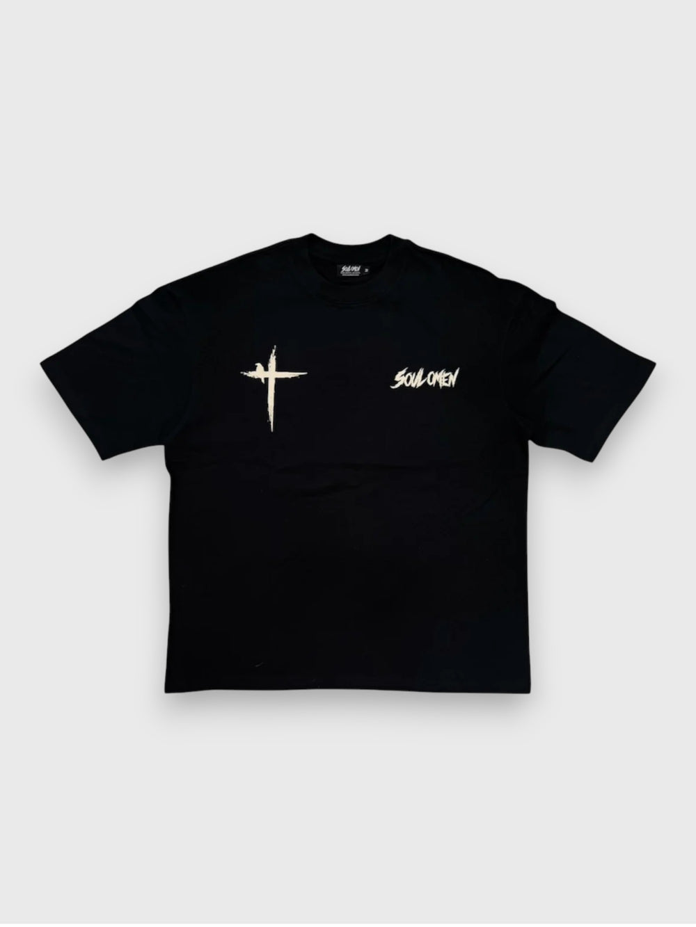 “CROSS” PREMIUM OVERSIZED TEE - BLACK